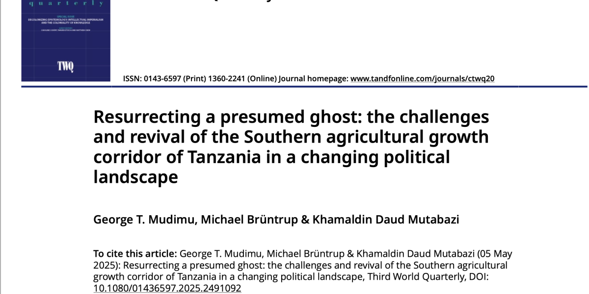 Mudimu, G. T., Brüntrup, M., & Mutabazi, K. D. (2025). Resurrecting a presumed ghost: the challenges and revival of the Southern agricultural growth corridor of Tanzania in a changing political landscape. Third World Quarterly. https://doi.org/10.1080/01436597.2025.2491092